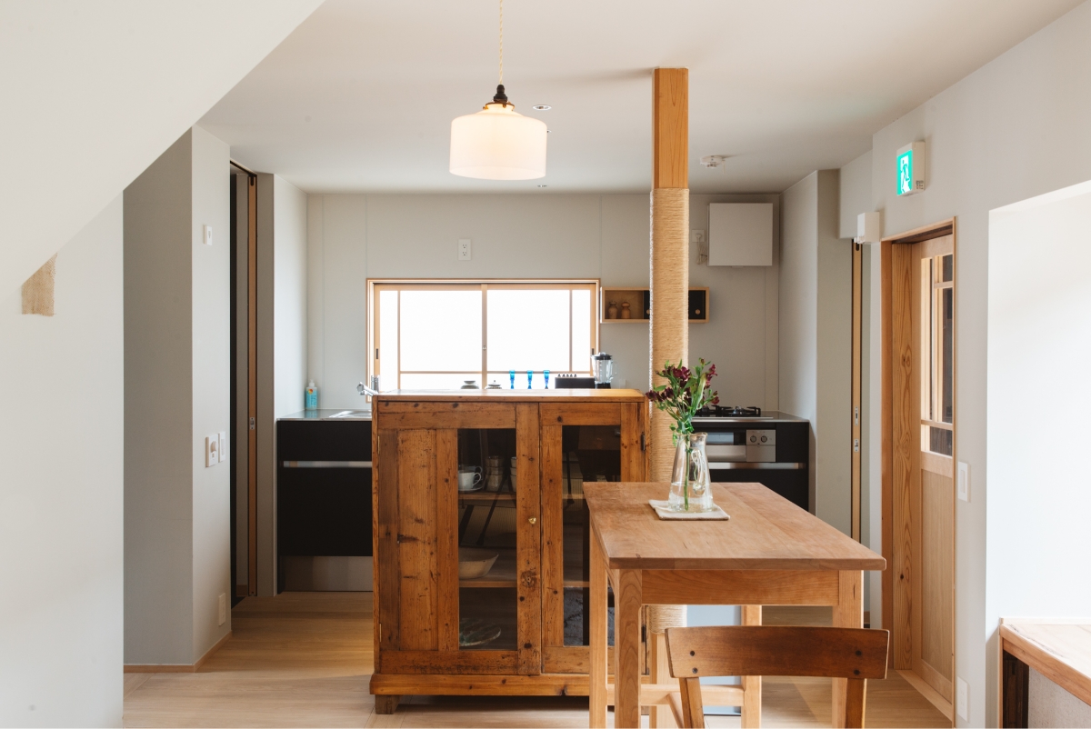 At the spacious kitchen, the cooking tools crafted by hand and open space kitchen will bring warmful dining with your companion. Please enjoy at the dining table in the Japanese room. For those who would stay for consecutive nights or long term, our facilities are perfect for you. The washing machine and other necessary facilities are prepared for these guests. You can feel at home.